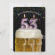 Velas de aniversário número 53 em caneca de cerveja com confete colorido em preto para convite à festa de aniversário 53.