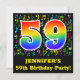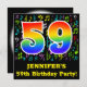 A frente desta design divertida, excitante e vibrante de convite de aniversário apresenta um grande número "59" tendo um padrão inspirado no gradiente do espectro arco-íris. Ele também apresenta um nome personalizável e a mensagem "59ª Festa de aniversário!". Parte do fundo tem um padrão divertido de várias notas e símbolos de música com várias cores e tamanhos. A parte traseira contém detalhes/informações personalizados relacionados ao evento para o qual os possíveis convidados estão sendo convidados. Cartões de convite de aniversário vibrantes e personalizados como este podem ser usados ao convidar convidados para comparecer a uma reunião realizada para comemorar um músico, um cantor, um compositor de música ou o quinquagésimo nono aniversário de alguém. [~Z0000427]