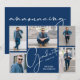 Adicione suas cinco fotos favoritas na frente destes anúncios de graduação que apresentam a palavra 'graduado' em letras elegantes, juntamente com seu nome e ano de formatura. Os detalhes do seu anúncio estão no verso em azul. MAIS designs e cores disponíveis em nossa loja, incluindo convites de festa, cartões de 'salve o dia' e postais.