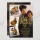 Convite 5 Foto Colagem Dourada Script QR Casamento