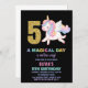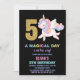 Convite 5 Rainbow Unicorn Aniversário Invoca Preto