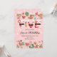 Celebrate the season in sweet style with this festive pink Christmas Birthday invitation! Featuring cheerful Santa-inspired lettering, adorable gingerbread cupcakes, donuts, and delicate snowflakes, this invitation is perfect for a fun and whimsical holiday gathering.