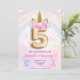 Convite 5th unicorn party invite, Editable 5th birthday in