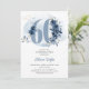 60º convite de aniversário com o número 60 decorado com rosa-buds, florais e folhagem em tons de azul litorâneo e areia. Design sutil feminino e elegante com arranjos florais de aquarela, decapantes de tinta e pinceladas. Perfeito para comemoração de 60 anos com vibe costeira, casa de praia ou lago ou local de entrada de água, por exemplo.