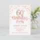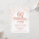60º Convite de aniversário. Design elegante em ouro branco, cor-de-rosa e brilhante rosa. Possui fonte de script na moda e confetti. Envie-me uma mensagem se precisar de idade personalizada.