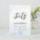 Comemore seu dia especial com este simples convite de aniversário 60º. Este design apresenta um script de na moda com a letra "Sessenta" com um fundo de lavagem de cor d'água com pasta azul e menta. Mais convites para aniversários adultos e material de festa estão disponíveis no meu compro BaraBomDesign.