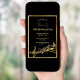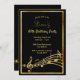 Um cartão moderno de 60º convite de aniversário para homens e mulheres. Um fundo preto clássico, com falso quadro dourado e notas musicais, letras ouros coloridas. Modelos para informações sobre a sua parte. Anterior: as notas de música douradas a preto falham. Dica: Se você não quiser que pareça um cartão postal, clique em personalizar, vá para o verso e remova o divisor e o carimbo de posto.