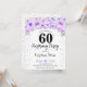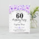 60º convite de aniversário. Design elegante em prata brilhante com sotaque floral. Convide cartão com fonte de script e confetti. Lilás de lavanda roxa e de pasta branca. Perfeito para uma comemoração de na moda 30 dias. Envie-me uma mensagem se precisar de idade personalizada.