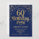 60º Convite de aniversário. Design elegante em azul marinho e ouro brilhante falso. Possui fonte de script na moda e confetti. Envie-me uma mensagem se precisar de idade personalizada.