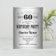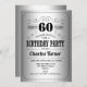 60º Convite de aniversário. Folha de prata e design preta retro elegante. Pode ser personalizado em qualquer idade!