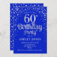 60º Convite de aniversário. Design elegante em azul real e prata brilhante falso. Possui fonte de script na moda e confetti. Envie-me uma mensagem se precisar de idade personalizada.