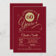 60º Convite de aniversário em vermelho escuro com padrão de ouro brilhante falso. Apresenta a fonte do script de tipografia de tendência. Simples design moderno, perfeito para uma festa elegante. Até 60 anos! Pode ser personalizado em qualquer idade! Envie-me uma mensagem se precisar de mais personalização.