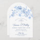 Elegante poeirento rosa floral azul 60º aniversário convite de forma de arco.