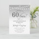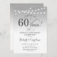 Convite de Celebração de 60º Aniversário de Casamento. Design branco e prata com luzes de fada e fonte elegante. Parabéns pelos 60 anos! Pode ser personalizado para qualquer ano de casamento. Convites Zazzle impressos ou modelo digital para download instantâneo. Perfeito para uma celebração de 60 anos de casamento com estilo diamante.