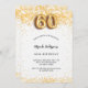 Para uma elegante 60ª festa de aniversário. Um fundo branco chic. Decorado com confete de ouro. Personalize e adicione um nome e detalhes da parte. O nome é escrito com um script de estilo manuscrito. Número 60 com letra de estilo de balão.