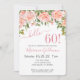 Convites de 60º aniversário florais cor-de-rosa - festa 'olá 60!' com fundo branco e belo impressão que você pode personalizar com toda a sua informação festa de aniversário. com cor de pêssego e rosa - elegante.