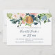 Buquês cor-de-rosa-reluzente, branco-marfim, cor de pêssego e rosa azul-boêmico, com folhagem verde-salva e um círculo vago metálico cintilante de cobre fazer um moderno glam horizontal, marco feminino sessenta e fabuloso convite de aniversário com um trendy chic com um roteiro de tipografia totalmente editável. ++++++++++++++ Adequado para qualquer tema de jardim da estação - primavera, verão, outono e até mesmo inverno.