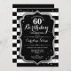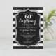 60º Convite de Aniversário. Design preto elegante com falso prata. Listras pretas e brancas com diamantes brilhantes confetti. Perfeito para uma bolsa mensageifesta de aniversario elegante.