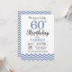 60º Convite de Aniversário com Blue Chevron.Preto & Branco. Aniversário Adulto. O Dia do Homem ou da Mulher Convidam.