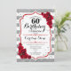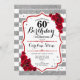 60º Aniversário Convite Elegante design vermelho prateado com falso brilho. Listras prateadas e brancas com rosas vermelhas. Perfeito para uma bolsa mensageifesta de aniversario elegante.
