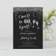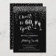 60º Convite de Aniversário. Até 60 Anos! Design elegante em preto, branco e prata. Apresenta óculos de champanhe, fonte de script e confetti. Perfeito para na moda 60 festas de aniversário. Personalize com seus próprios detalhes. Pode ser personalizado para mostrar qualquer idade.