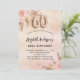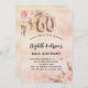 Um fundo rosa dourado, rosado, rosado e roxo, com aspecto metálico. Decorados com ouro rosa e flores, rosas, grama-pampas. Personalize e adicione um nome e detalhes da parte. O número 60 é escrito com uma fonte no estilo do balão.