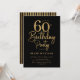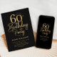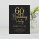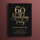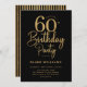 60th birthday party invitation in black and gold. Simple minimalist modern design, perfect for a classy men's or women's bday celebration. Features script font and stylish stripes on the back. Customize with your own details. Printed Zazzle invitations or instant download digital printable template.