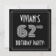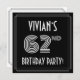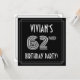 The front of this 1920s/1930s style inspired sixty-second birthday celebration/party invitation card design features a personalized name, an intricate art deco style inspired number “62nd”, the message “BIRTHDAY PARTY!”, and a multi-line border. The front also features a black-colored background by default, but it can be customized to a different color if desired. The back features personalized details about the event, such as the date, time, venue/place, and any other important information. Stylish, luxurious, editable invitations like these might be used to invite attendees/guests to a birthday party/gathering being held to celebrate somebody’s 62nd birthday. [~Z0000615]