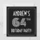 The front of this stylish and 1920s/1930s style inspired sixty-fourth birthday party/celebration invitation card design features a custom name, a fancy art deco look inspired number “64th”, the message “BIRTHDAY PARTY!”, and a multi-line border. The front also has a black-colored background by default, but it can be customized to a different color if desired. The back features personalized details about the event, such as the date, time, location, and any other important information. Elegant, stylish, customized invitations like these might be used to invite guests to a birthday gathering/party being held to honor somebody’s 64th birthday. [~Z0000615]