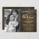 65º Convite de Aniversário de Casamento com Foto. Padrão elegante de madeira marrom-escura design rustica e dourado falso. Possui fontes de script e luzes de fada. Saúde para 65 anos! Pode ser personalizado em qualquer ano. Envie-me uma mensagem se precisar de mais personalização.