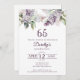Lilases púrpuras de aquarela suave criam um convite bonito de aniversário de 65 anos. A tipografia adiciona uma víbora, retrô víbora. Todo o texto é editável para que você possa definir o tom certo. Você também pode mudar fontes e cores facilmente. Este convite de 65 anos está disponível tanto no estoque de papelão tradicional quanto em uma versão para download. Faz parte da coleção Purple Primavera Lilac Flower. Ele permite que você escolha um tema e, em seguida, crie facilmente um conjunto único de convites, sinais de boas-vindas e decorações de festas. O planejamento de festas torna-se divertido e agradável.