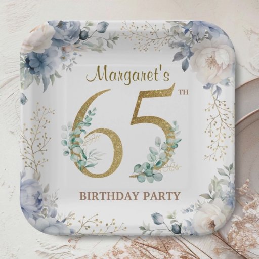 Celebrate the 65-year milestone in style with our elegant "65th Birthday Party Elegant Dusty Blue Floral Invitation!" Perfect for a memorable 60th birthday party. Order your today and make your celebration truly special! Please note: Gold glitter effects are only simulated; no real gold will be used in the printing process