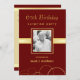 Convites de festas adultos modernos elegantes do comensal do aniversário da surpresa de Borgonha e de ouro 65th para homens ou mulheres, com ou sem a foto -- Mude a cor do fundo, o ano, ou a ocasião especial -- Adicione os nomes, a data, e os detalhes para criar seus próprios convites de festas personalizados originais para toda a celebração especial do aniversário do marco miliário - 30o, 40th, 50th, 55th, 60th, 70, 75th, 80, 85th, 90, 95th, 100th. ** NOTA: Feito sob medida para cartões do convite 5x7 -- outros tamanhos e estilos disponíveis na galeria.