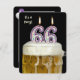 Velas de aniversário numa caneca de cerveja para o 66º convite de aniversário.