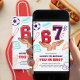 Score a touchdown with this sporty and fun 7th birthday invitation! Featuring a vibrant red and blue color scheme, this design showcases playful sports icons like a soccer ball, baseball bat, foam finger, and pizza, all surrounding the big '67' numbers. The bold text "YOU IN BRO?" adds a cool, energetic vibe perfect for a young boy's celebration. This invite is sure to get your guests excited for a birthday bash full of fun and games. Make his 7th birthday legendary with this awesome sports-themed invite!