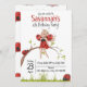 Bonita e 6 de Aniversário giro, com convites de uma adorável joaninha, sentada num galho de árvore, outras duas joaninhas neste jardim balnear e mágico. Personalize este belo convite de aniversário com o nome das raparigas e os detalhes da festa, como data, hora e local.