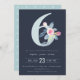 CONVITE 6 FLORAL AZUL AZUL MARINHO DE DE QUALQUER ANIVERSÁ