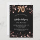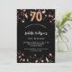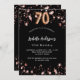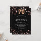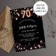 Um fundo preto clássico, decorado com estrelas douradas rosa. Personalize e adicione um nome e detalhes da parte. O número é escrito com um script de estilo de balão.