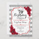 70 Aniversário Convite Elegante design vermelho prateado com brilho falso. Listras prateadas e brancas com rosas vermelhas. Perfeito para uma bolsa mensageifesta de aniversario elegante.
