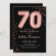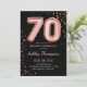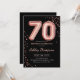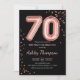 convite de aniversário 70. Design elegante em ouro brilhante rosa e preto. A placa de convite apresenta o rosa gold número 70 balões e a fonte do script. Perfeito para uma comemoração de na moda. Envie-me uma mensagem se precisar de idade personalizada.