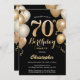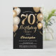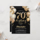 70 Aniversário Negro e Balões Dourados Confetti Convite. Para mais personalização, clique no botão "Personalizar" e use nossa ferramenta de design para modificar este modelo.