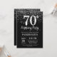 Convite de Aniversário de 70 com Luzes de Cordas de Prata com Fundo Glitter de Prata. Aniversário de Prata. Aniversário Adulto. Homens ou Mulheres no Dia Convidam. 13 15 16º 18º 20 21rua 30 40º 50º 60º 80 de 70 100º, qualquer idade. Para mais personalização, clique no botão "Personalizar" e use nossa ferramenta de design para modificar este modelo.