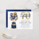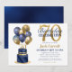 Este fabuloso convite de aniversário de 70 para homens com 2 camadas de azul e bolo de ouro com marinho azul e balões de ouro, o número 70 em ouro seria perfeito para celebrar o seu amado aos 70 anos. É tradicional e clássico enquanto é fresco, moderno e contemporâneo. A parte de trás é uma folha azul-marinho coordenadora.