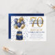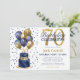 Este fabuloso convite de aniversário de 70 para homens com 2 camadas de azul e bolo de ouro com marinho azul e balões de ouro, o número 70 em ouro e confete azul brilhante seria perfeito para comemorar seu amado fazendo 70. É tradicional e clássico enquanto é fresco, moderno e contemporâneo. A parte de trás é uma folha azul-marinho coordenadora.
