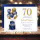 Este fabuloso convite de aniversário de 70 para homens com 2 camadas de azul e bolo de ouro com marinho azul e balões de ouro, o número 70 em ouro seria perfeito para celebrar seu marido, irmão, pai, amigo, colega de trabalho. É tradicional e clássico enquanto é fresco, moderno e contemporâneo. A parte de trás é uma folha azul-marinho coordenadora.
