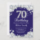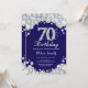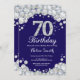 Convite de aniversário de 70. Diamante Azul marinho e Rinotraqueíte Prateada. Convidado Elegante Birthday Bash. Aniversário Adulto. Mulheres Aniversário. Homens Aniversário. Para mais personalização, clique no botão "Personalizar" e use nossa ferramenta de design para modificar este modelo.