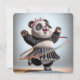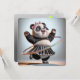 Um panda alegre vestindo um arco e flores gira um aro colorido de hula arco-íris enquanto veste uma pequena saia pregada e calçados de sela para uma festa de aniversário 70. Todo o texto pode ser alterado.