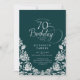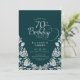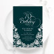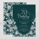 Convite de aniversário elegante de 70 verde prata esmeralda. Design clássico com rosas, folha prateada falsa e letra de script de tipografia. A Trendy convida o cartão perfeito para uma festa de na moda. Personalize com seus próprios detalhes. Pode ser personalizado para qualquer idade. Impressos convites Zazzle ou modelo de impressão digital instantânea para download.