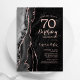 Convite de aniversário 70 de ouro preto e rosa. Elegante design moderno com aquarela agate marble geode background, faux glitter rosa gold e typografia script font. Trendy convida o cartão perfeito para uma comemoração de dia das mulheres na moda. Impressos convites Zazzle ou modelo de impressão digital instantânea para download.