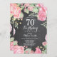 Convite De Aniversário Para 70 De Botânica Convite de Aniversário para Mulheres de Rosa Floral Flor Floral de Água. Rosa Rosa Rosa Elegante e Flores de Pequim. Aniversário Adulto. Fundo do quadro.Preto & Branco. 13 15 16º 18º 20 21 rua 30 40º 50º 80 de 60º 70 de 100º, qualquer idade.
